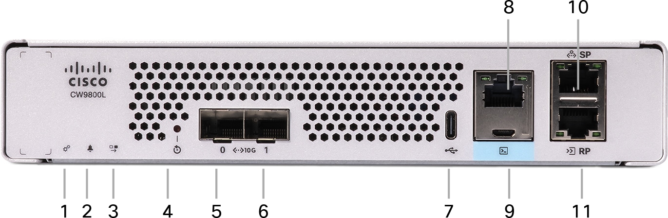 | 9 | Micro USB console port | Console ports are disabled for Campus Gateway Deployment |